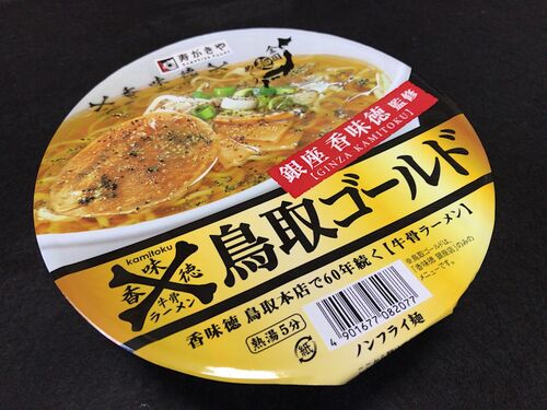 今日は晴天。 日差しは強いものの、 涼しい風が吹いた佐賀市。 夜になれば肌寒さ。 今日の仕事終わりはこちら。 「銀座香味徳監修 鳥取ゴールド牛骨ラーメン」 ゴールドのパッケージが、 印象的。 銀座香味徳(ぎんざかみとく) 本店は鳥取にあるそうで、 牛骨…
