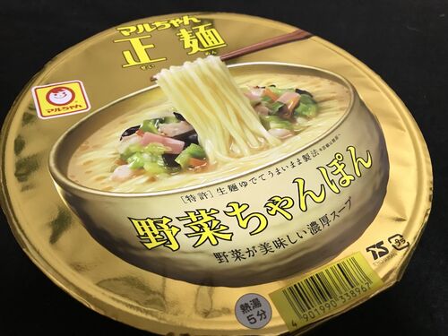 今日は雨のち曇り。 所により、 雨が遅くまで残った佐賀市。 秋晴れ遠し・・・・ 今日の仕事終わりはこちら。 「マルちゃん正麺 野菜ちゃんぽん」 10月2日(月)東洋水産から新発売。 金色のパッケージが、 目に痛い・・・笑 食塩相当量は6.4g 中身は、 粉末…