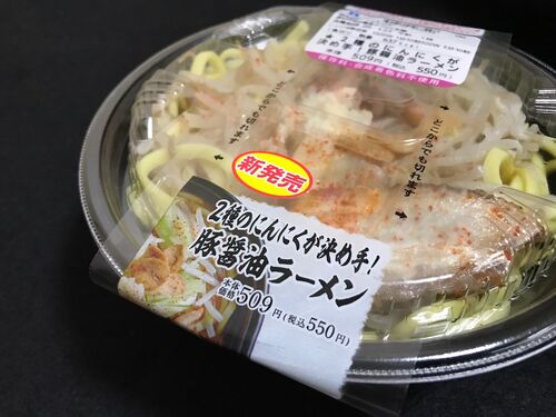 今日は晴天。 薄い青空が広がった佐賀市。 気温以上に暖かさ。 明日からは雨続く予報・・・・ 今日の仕事終わりはこちら。 「2種のにんにくが決め手!豚醤油ラーメン」 ローソンより1月20日(月)新発売。 新発売と申しましても、 昨年12月に発売された、 「背…
